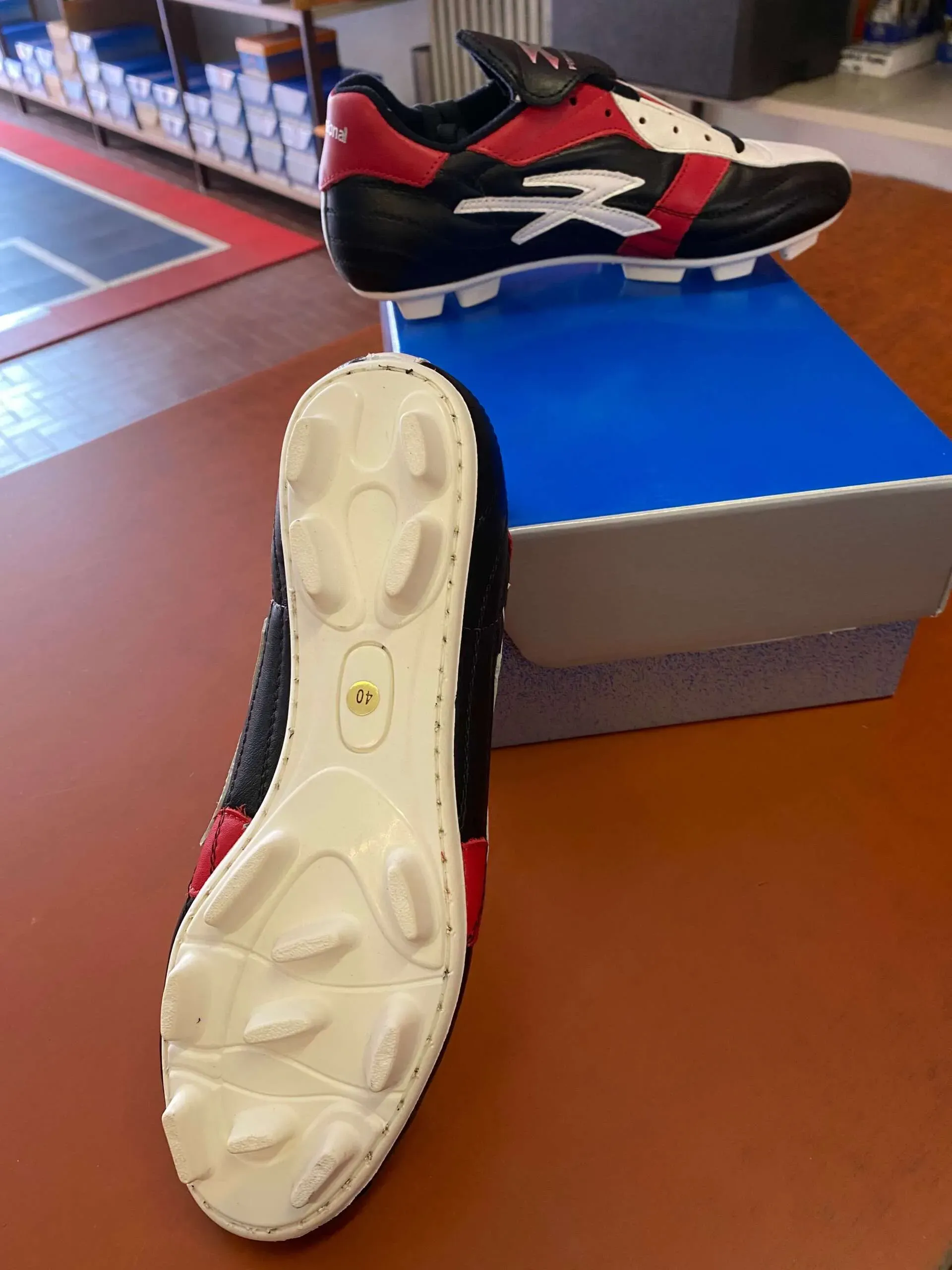 La ditta si occupa della vendita di scarpe nelle versioni calcio, con suola in gomma, suola lamellare, suola mista e suola avvitabile, calcetto indoor e outdoor e con la particolare suola adatta ai terreni sintetici.